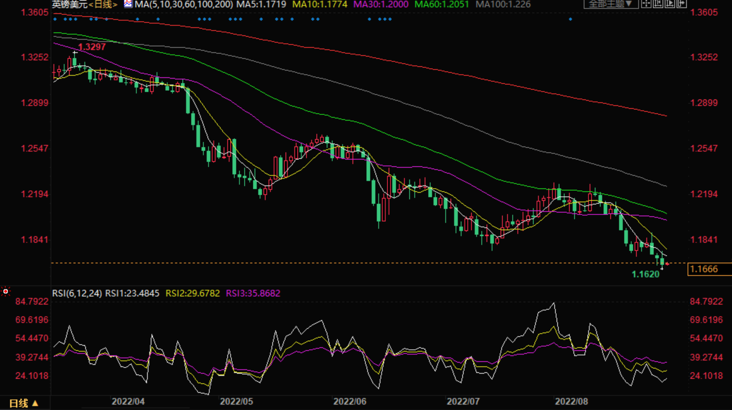 截止目前,英镑兑美元上涨至1.1665,涨幅009%。