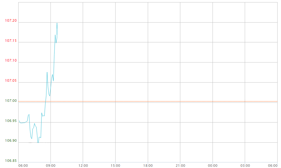 截至目前,美元指数交投于107.15附近,美元指数上周五小幅上涨,收报107.00,涨幅约0.31%,周线上涨0.54%,创下一个多月以来的最大单周涨幅,因投资者关注债券收益率上升,并继续对美联储的加息路径进行押注。
