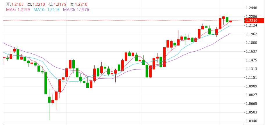 截至发稿,英镑兑美元报价1.2297,英镑兑美元周一在亚洲交易时段一度触及逾五个月高位1.2345美元,但随后震荡走弱,因为对英国经济衰退的担忧挥之不去,收盘下跌0.84%,收报1.2186,为近一周最差表现。
