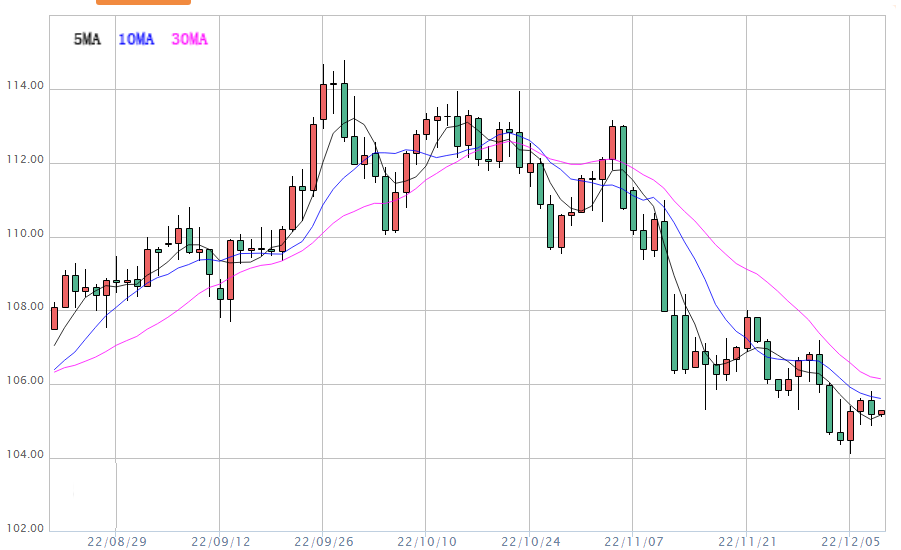 截至目前,美元指数交投于105.30附近,美元指数周三受到10日均线和200日均线的双重阻力压制,收盘下跌0.35%,收报105.20附近。一些美国银行高管正在为明年美国经济恶化做准备。其中,美银首席执行官莫尼汉(Brian Moynihan)在高盛的金融会议上对投资者表示,该行的研究显示,2023年上半年将出现“负增长”,但萎缩将是“温和的”。