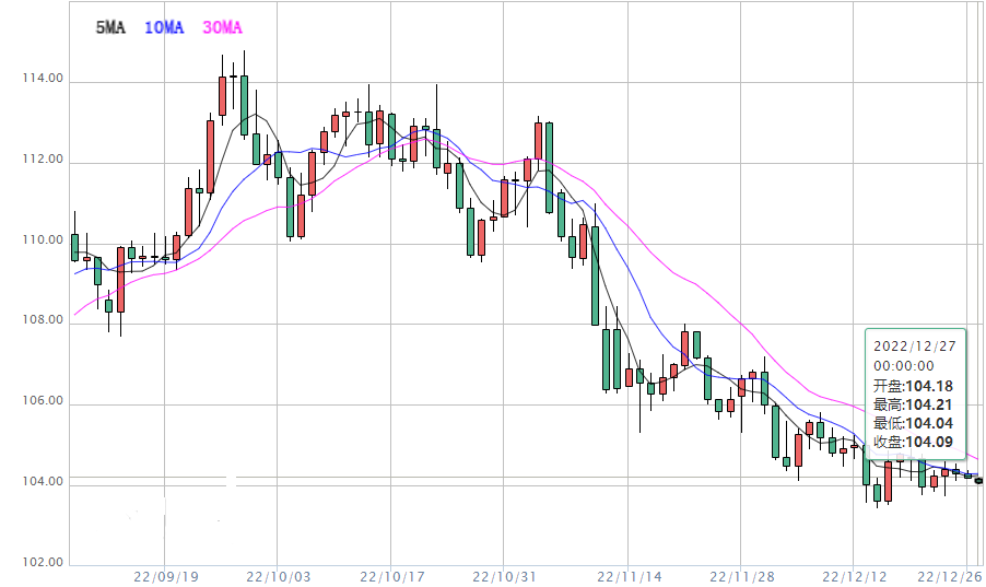 截至目前,美元指数窄幅震荡,目前交投于104.10附近。本周经济数据和事件相对清淡,预计汇市偏向窄幅震荡。周一美元指数微跌0.13%,收报104.18。