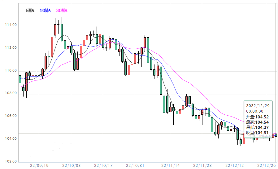 截至目前,美元指数窄幅震荡,目前交投于104.31附近。周三美元指数上涨0.3%,收报104.52。衡量美元兑六个主要竞争对手的美元指数周三上涨0.3%至104.520。两周前,当美联储放缓加息步伐时,美元指数创下了103.44的六个月低点。