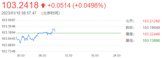 截至目前,美元指数窄幅震荡,目前交投于105.12附近。隔夜美元指数延续上周五跌势,一度创6月10日以来新低至102.92,收报103.20附近,因交易员押注近期经济数据将促使美联储放慢加息步伐,而风险较高货币则受益于中国重新开放边境。技术面显示,汇价已经初步跌破了12月30日触及的近半年低点103.38关键支撑,如果不能快速收复该位置,后市可能会进一步跌向5月30日低点101.30附近。