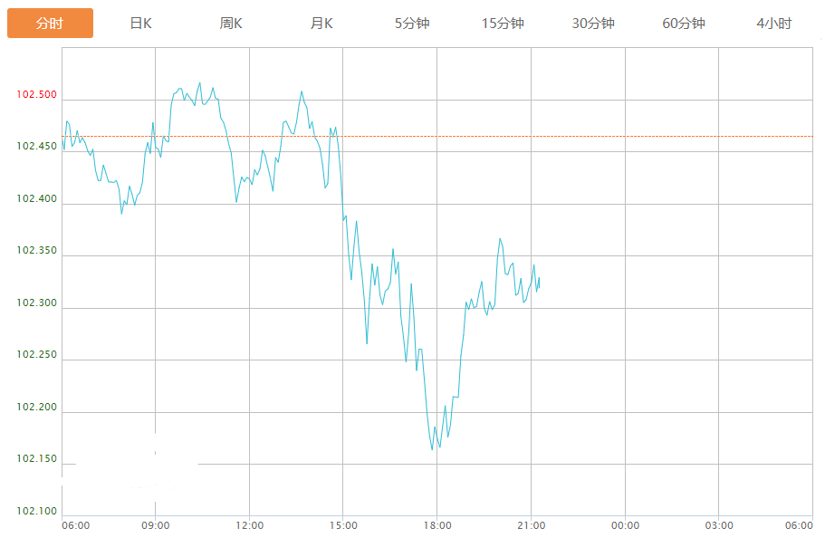 截至目前,美元指数下跌0.14%,报102.320。