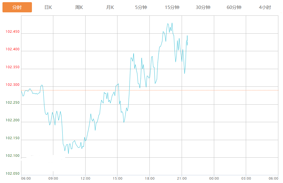 截至目前,美元指数上涨0.14%,报102.430。