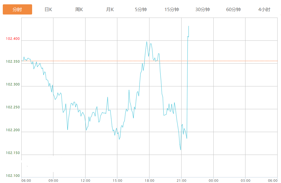 截至目前,美元指数上涨0.05%,报102.403。