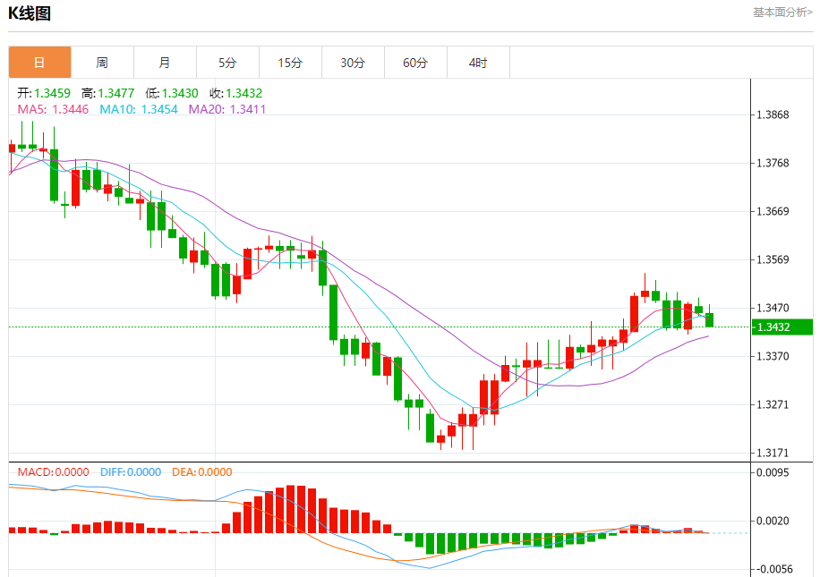 截至目前,美元/加元上涨0.01%,报1.3464。