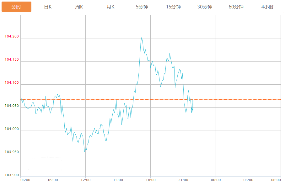 截至目前,美元指数下跌0.02%,报104.050。