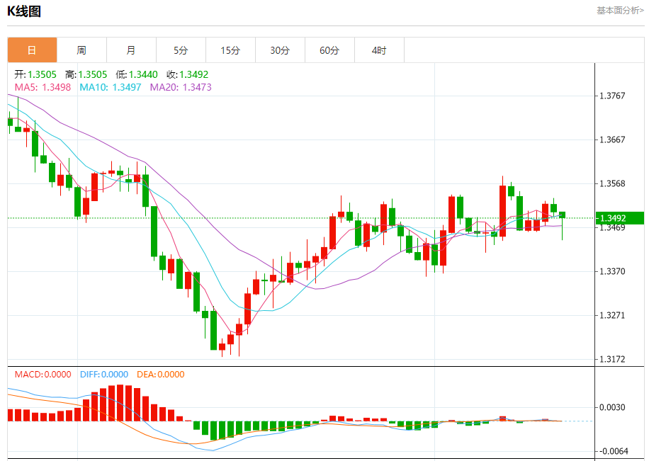 截至目前,美元/加元下跌0.10%,报1.3493。
