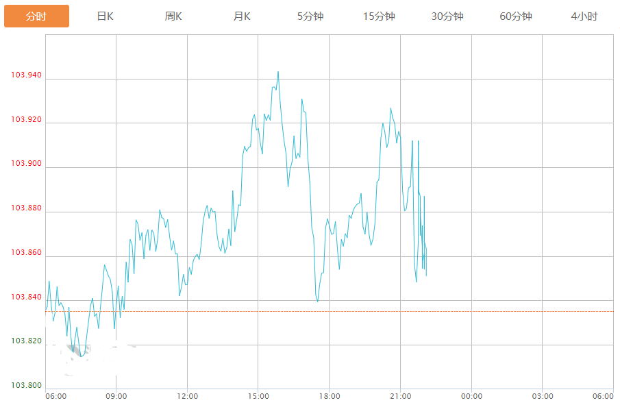 截至目前,美元指数上涨0.02%,报103.860。