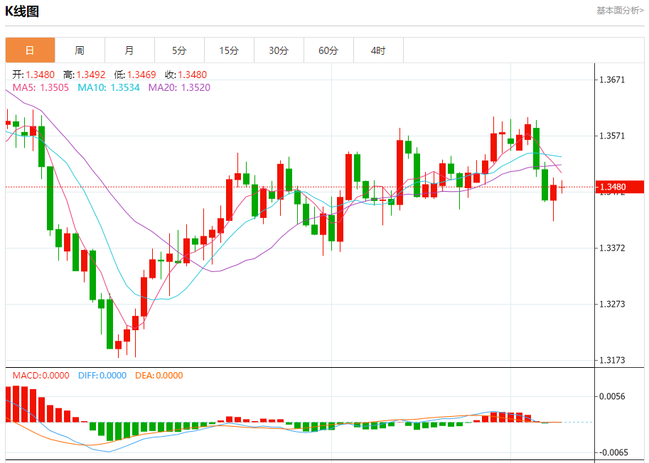截至目前,美元/加元下跌0.01%,报1.3481。