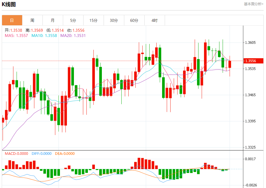 截至目前,美元/加元上涨0.13%,报1.3557。