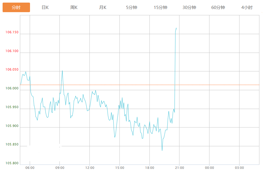 截至目前,美元指数上涨0.13%,报106.156。