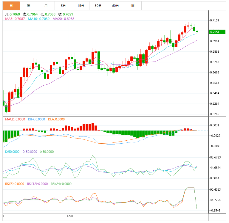 澳元兑美元探索了两天的下跌趋势,同时由于中国和国际货币基金组织(IMF)发布了积极的风险消息,其买入价从盘中低点回升。即便如此,在本周顶级央行会议召开之前的焦虑气氛中,买家似乎难以夺回控制权。也就是说,澳元兑美元在周二早盘上涨至0.7055,此前该货币对从盘中低点0.7038反弹。