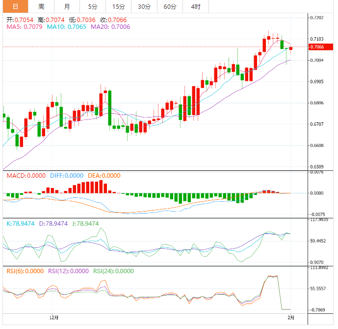 日收盘价低于一个月以来的上升趋势线(截至发稿时约为0.7015)是说服澳元/美元空头的必要条件。