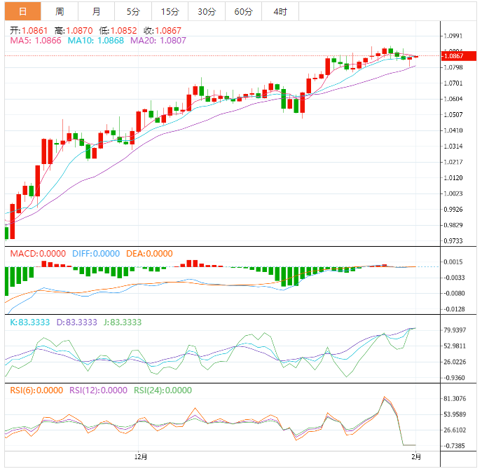 周二,欧元区第四季度(第四季度)国内生产总值(GDP)初值环比增长0.1%,预期增长0.0%,前值增长0.3%。同比数据也为欧元区描绘了一幅美好的图景,该数据从此前的2.3%升至1.9%,超过了市场普遍预期的1.8%。然而,德国12月零售销售环比暴跌5.3%,比预期糟糕得多。本周早些时候,德国GDP数据也令欧元兑美元的交易员感到失望。