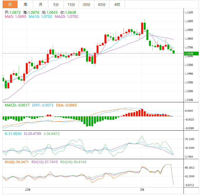 三个月支撑线(现在阻力位在1.0710附近)的明显下行突破,加入了50日指数移动平均线(EMA)的崩溃,最接近1.0675,这使得欧元/美元空头有望跌破上月低点1.0483。