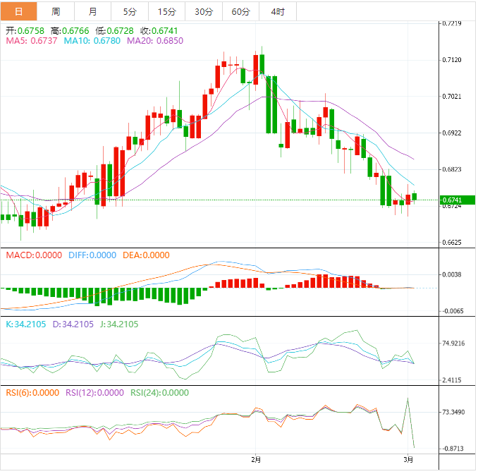 澳元兑美元仍在0.6755附近盘桓,因交易员等待更多信号来支撑周四亚洲市场早盘从两个月低点反弹的最新行情。在美国国债收益率强劲、美国数据大多乐观的背景下,澳元兑美元很难证明美元走软以及与中国相关的市场乐观情绪是合理的。