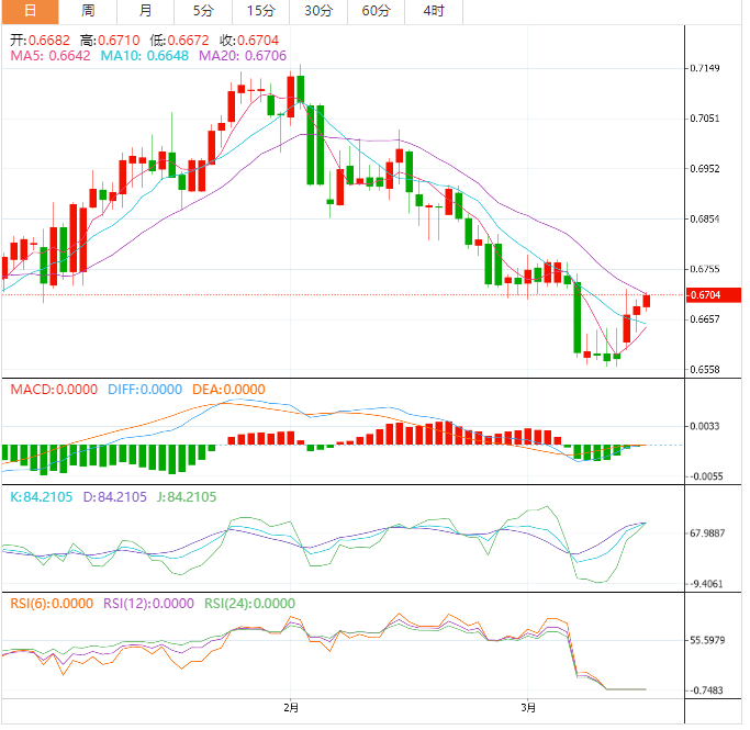 周二,美国消费者价格指数(CPI)和扣除食品和能源的CPI均符合市场预期,同比分别为6.0%和5.5%,此前分别为6.4%和5.6%。路透社在美国通胀数据发布后表示:“美联储预计将在下周上调基准利率0.25个百分点,并将在5月份再次上调,因为政府报告显示,美国2月份通胀仍处于高位,对长期银行危机的担忧有所缓解。”在澳大利亚国内,悲观的西太平洋银行3月消费者信心指数以及前一天公布的澳大利亚国民银行2月信心数据都让澳元/美元空头抱有希望。