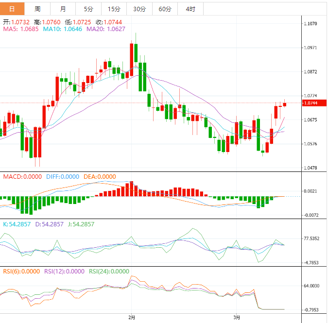 如日收盘价超过50日移动均线,欧元兑美元多头有望突破2月中旬的高点1.0805附近。