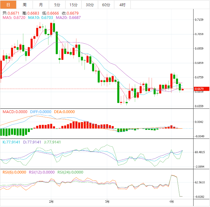 技术面上,日收盘价低于0.6680-85支撑位汇合点,当前的阻力位包括一个月的上升趋势线和21日移动均线,这使得澳元兑美元空头希望看到进一步下跌。