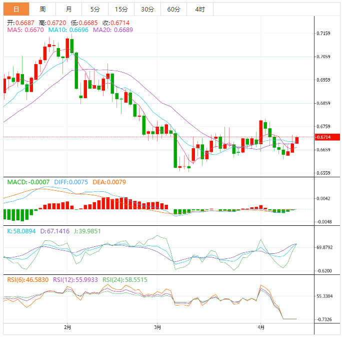 澳大利亚统计局公布3月季调后失业率,成为澳元/美元汇价的即时催化剂,目前澳元兑美元上涨至0.6708,涨幅0.33%。