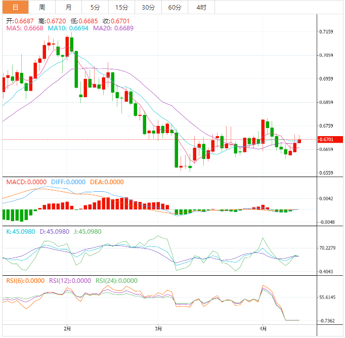澳元兑美元连续第三天走强,尽管中国3月贸易数据表现不佳,同时澳大利亚4月消费者通胀预期疲软。澳元兑美元上涨的原因可能与澳大利亚早些时候公布的就业数据有关。尽管如此,截至发稿时,该风险晴雨表货币对显示在0.6710附近温和上涨。