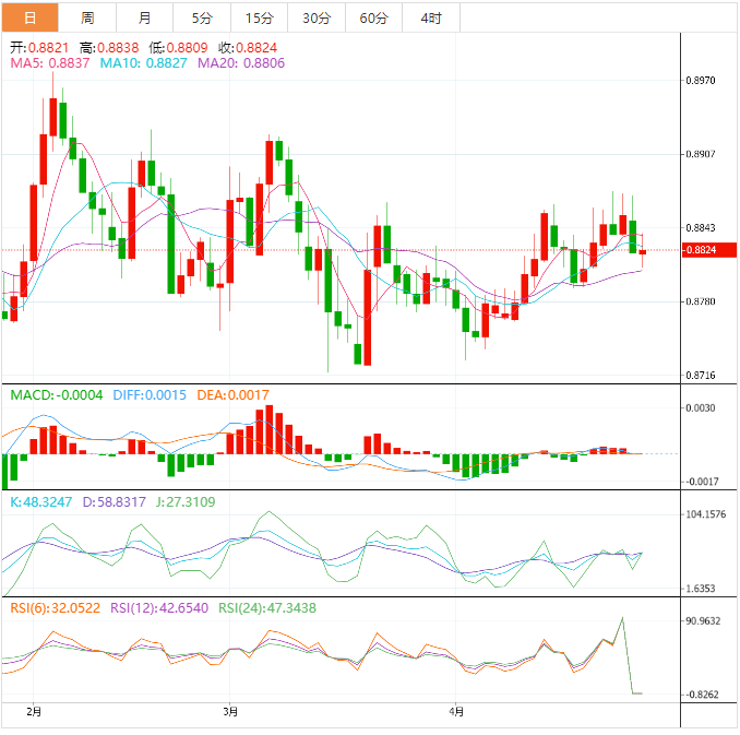欧元兑英镑交叉盘在上周五早盘升至0.8835-0.8840区域后吸引了一些卖家,随后连续第二天走低。现货价格在欧洲市场早盘跌至新的一周低点,空头在0.8800附近的100日简单移动平均线(SMA)支撑位徘徊。