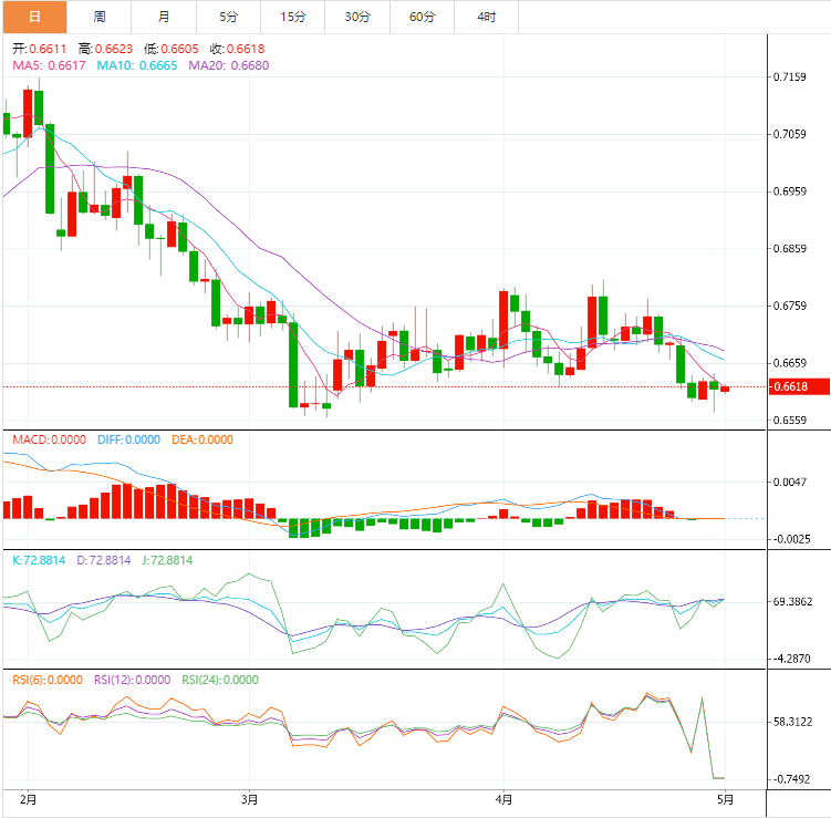 除非从3月初开始的支撑线(截至发稿时接近0.6665)反弹回来,否则澳元兑美元将刷新0.6565附近的年度高点。以上翻译结果来自有道神经网络翻译(YNMT)· 通用场景