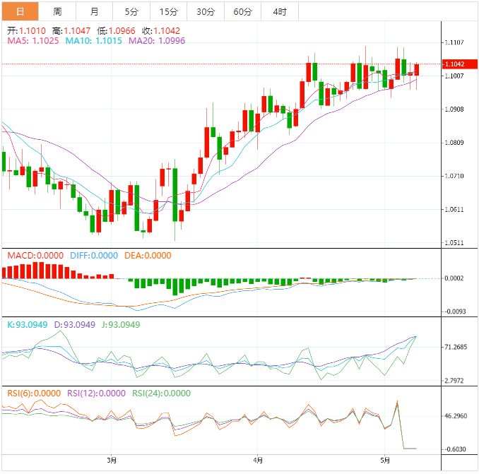 欧元兑美元多头保持在1.1040附近,在关键一周的低迷开局中再创盘中高点,在周一欧洲市场盘前上涨0.15%。欧元对最近的上涨可能与欧洲央行(ECB)官员的鹰派言论以及美元在混杂情绪中普遍疲软有关。