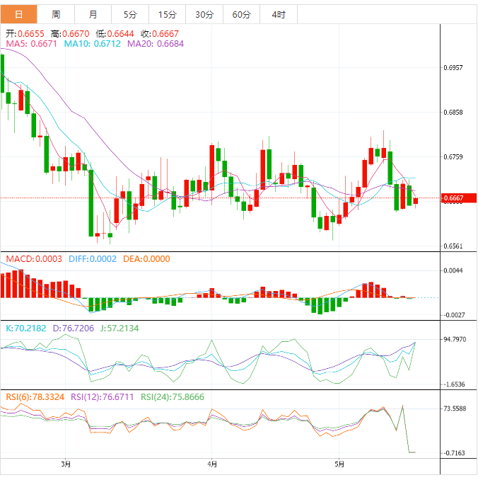持续跌破200日移动均线障碍0.6720附近,加上美元走强,将澳元兑美元价格从3月10日起推向向上倾斜的支撑线,最晚接近0.6620。
