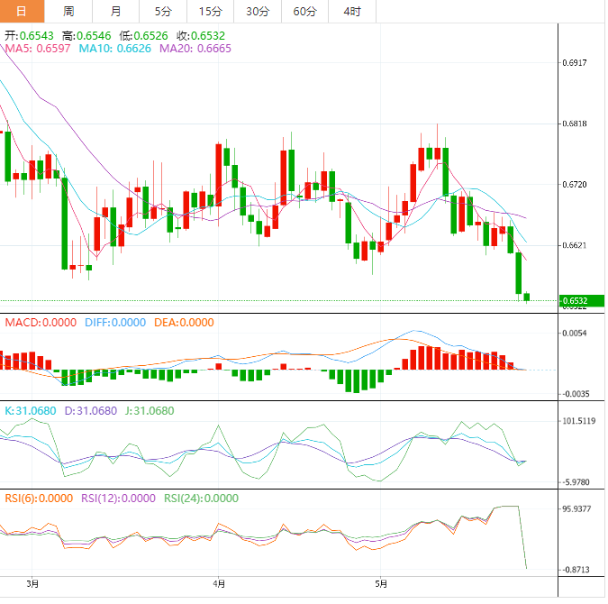 周四盘中,澳元兑美元垂直下跌至0.6530附近后,找到了中间支撑。澳元资产在衡量支撑位后缺乏复苏,表明澳元缺乏力量,这预示着澳元未来将进一步下跌。