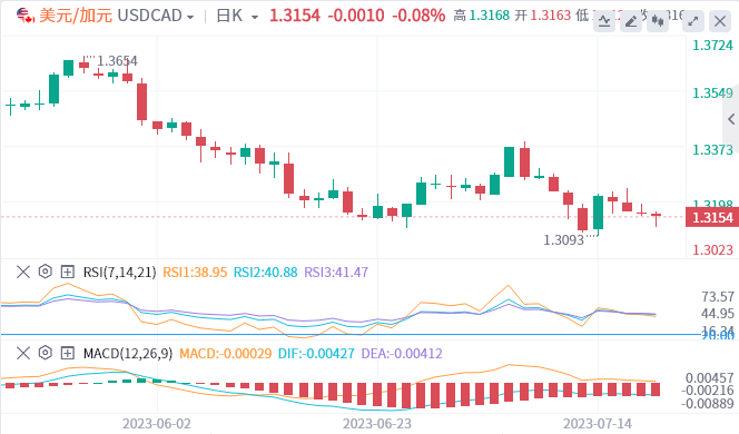 随着美国时段的开始,美元/加元货币对交投於1.3150附近。