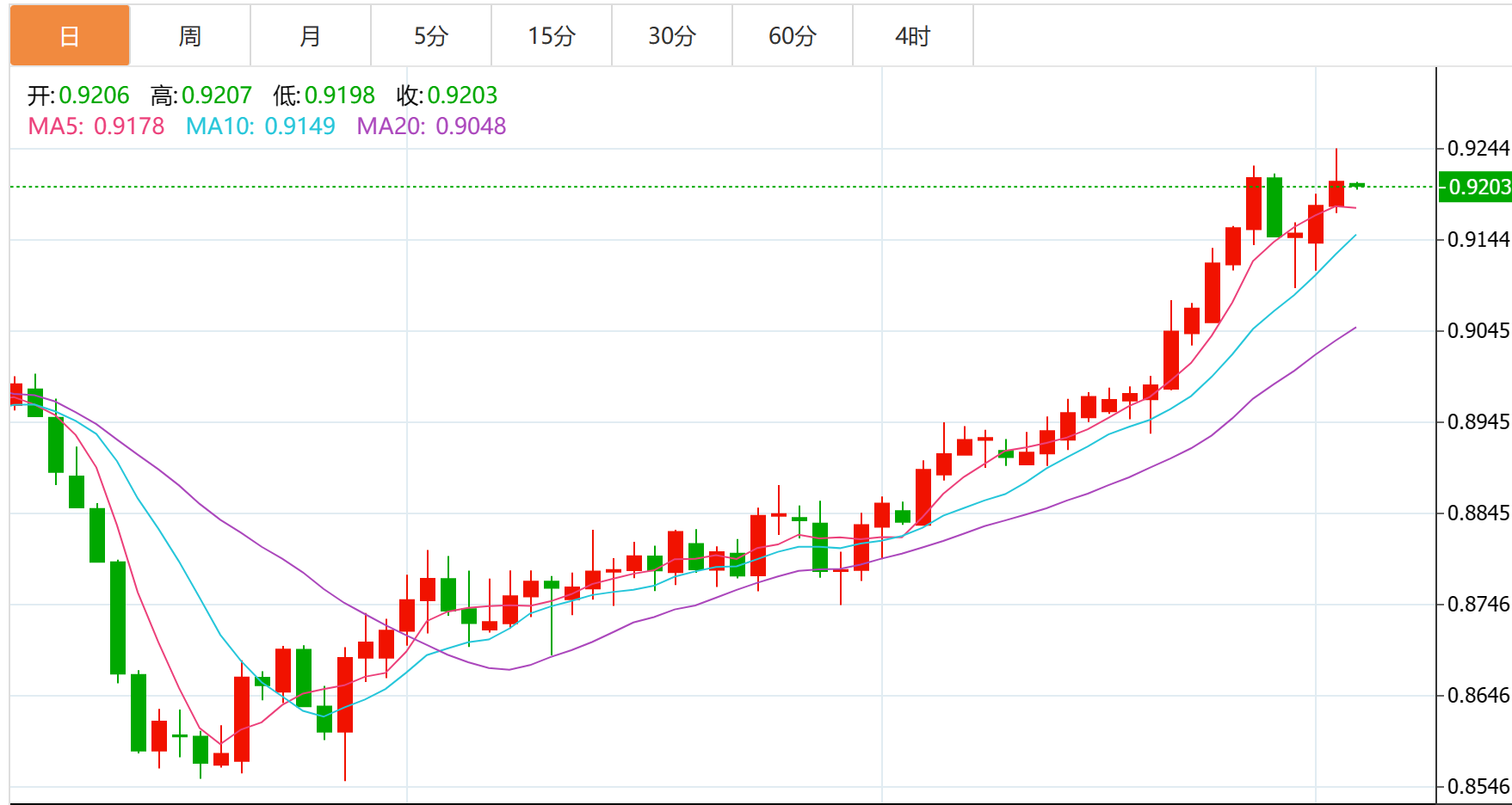 周四,美元/瑞郎连续第二日走低,进一步偏离本周初触及的0.9245附近的六个月高点。 亚洲时段,美元小幅下挫,打压美元/瑞郎跌至数日低点0.9100美元下方。