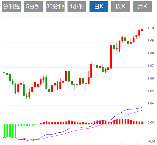 周三亚盘,欧元/美元延续了连续第五个交易日的涨势,交投于1.1000附近。美元受到美联储(Fed)欠鹰派政策立场的影响,欧元/美元因美元疲弱上涨。