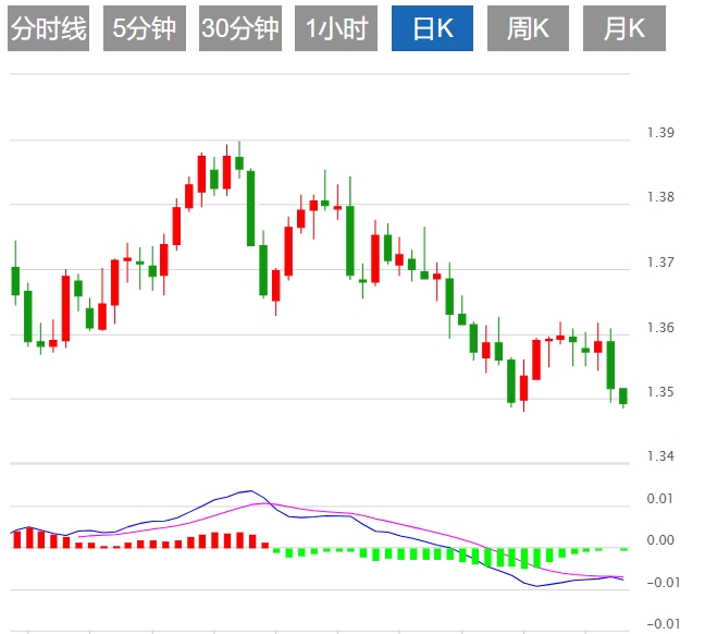 周四亚市早盘,美元/加元扩大跌势,跌破1.3500关口。美联储(Fed)会议后美元下跌打压美元/加元。截至记者发稿时,美元/加元报1.3488,全天下跌0.07%。