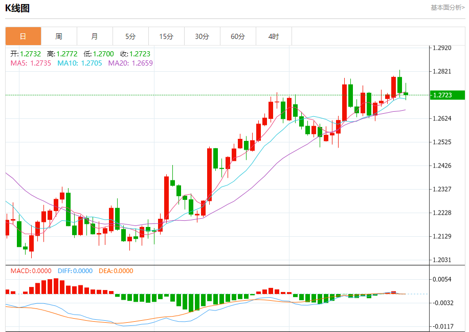 周五盘中,英镑/美元报1.2724,跌幅0.07%。