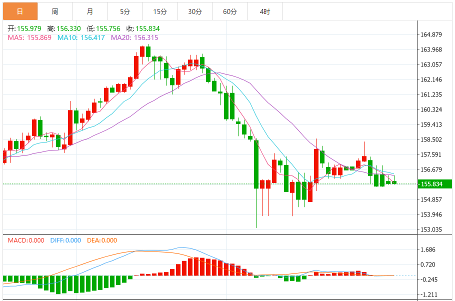 今天的预期交易范围:在156.40和155.00之间