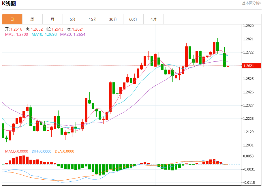 支撑位:1.2610 1.2590 1.2560