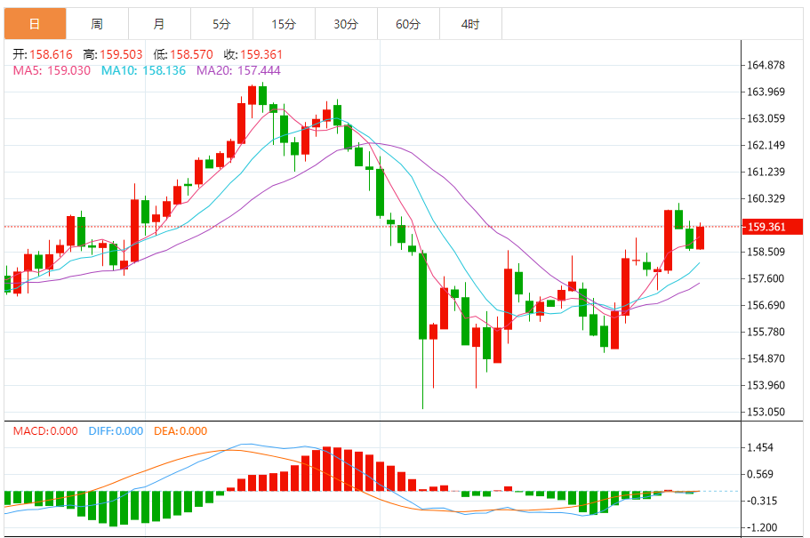 今天的预期交易范围:在158.75和159.65之间
