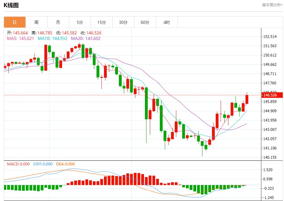 周二盘中,美元/日元报146.572,涨幅0.60%。