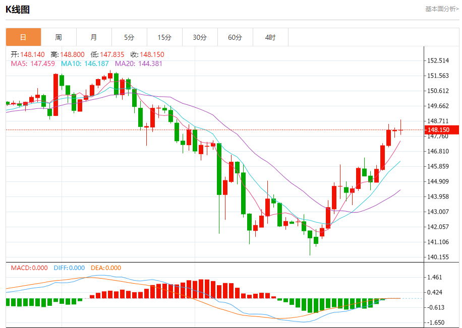 周五盘中,美元/日元报148.174,涨幅0.01%。