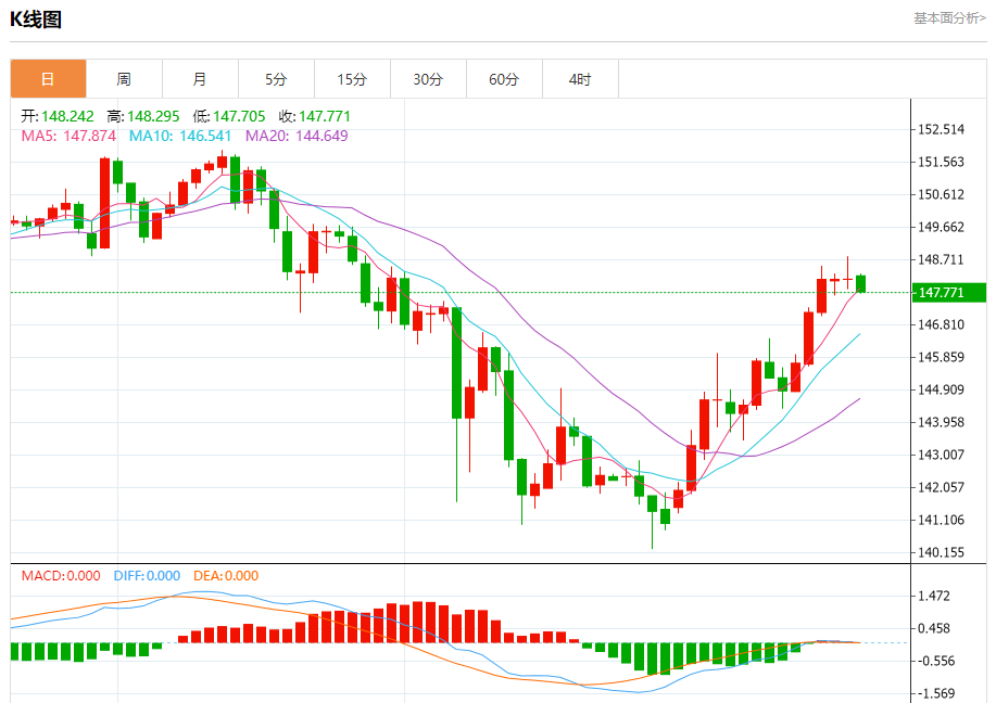 周一盘中,美元/日元报147.787,跌幅0.25%。