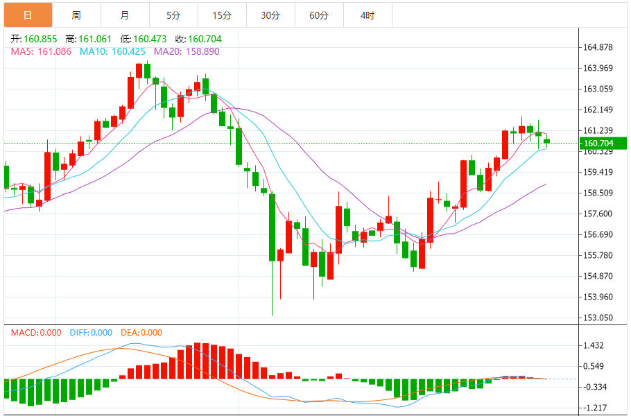 今天的预期交易范围:在161.20和160.05之间