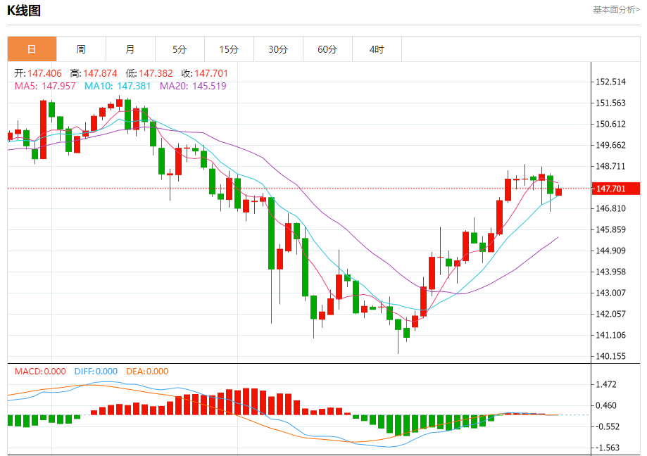 周四盘中,美元/日元报147.701,涨幅0.14%。