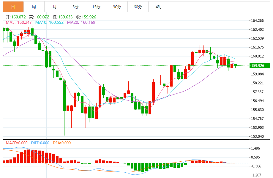 今天的预期交易范围:在160.00和159.20之间