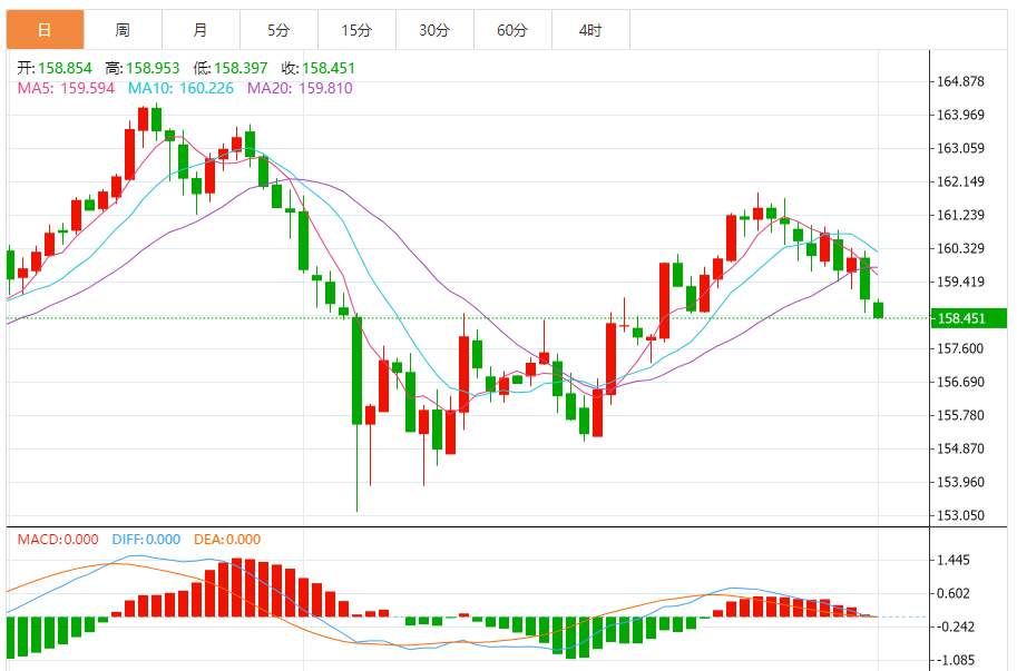 技术上,欧元兑日元昨日继续形成强劲的熊市波,面对158.45的次要熊市通道支撑线,并在图表上显示的支撑线上方站稳。