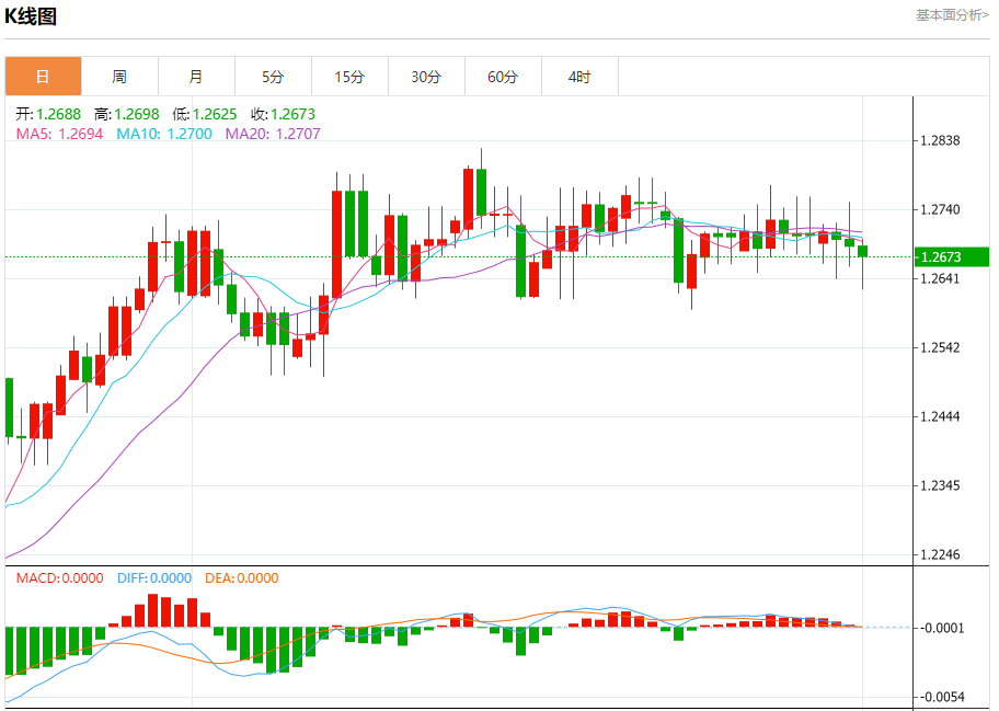 支撑位:1.2620 1.2595 1.2570