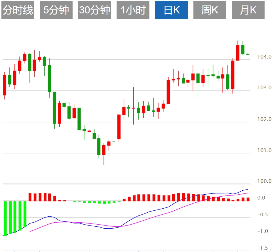 周三亚盘,美元衡量美元(USD)兑其他六种主要货币价值的指数(DXY)连续第二个交易日扩大跌幅。美元指数在收复部分盘中跌幅后仍处于负值区域,在亚洲时段徘徊在104.10附近。