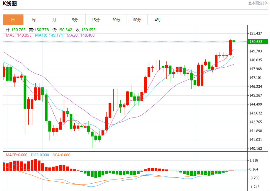 周三盘中,美元/日元报150.665,跌幅0.08%。